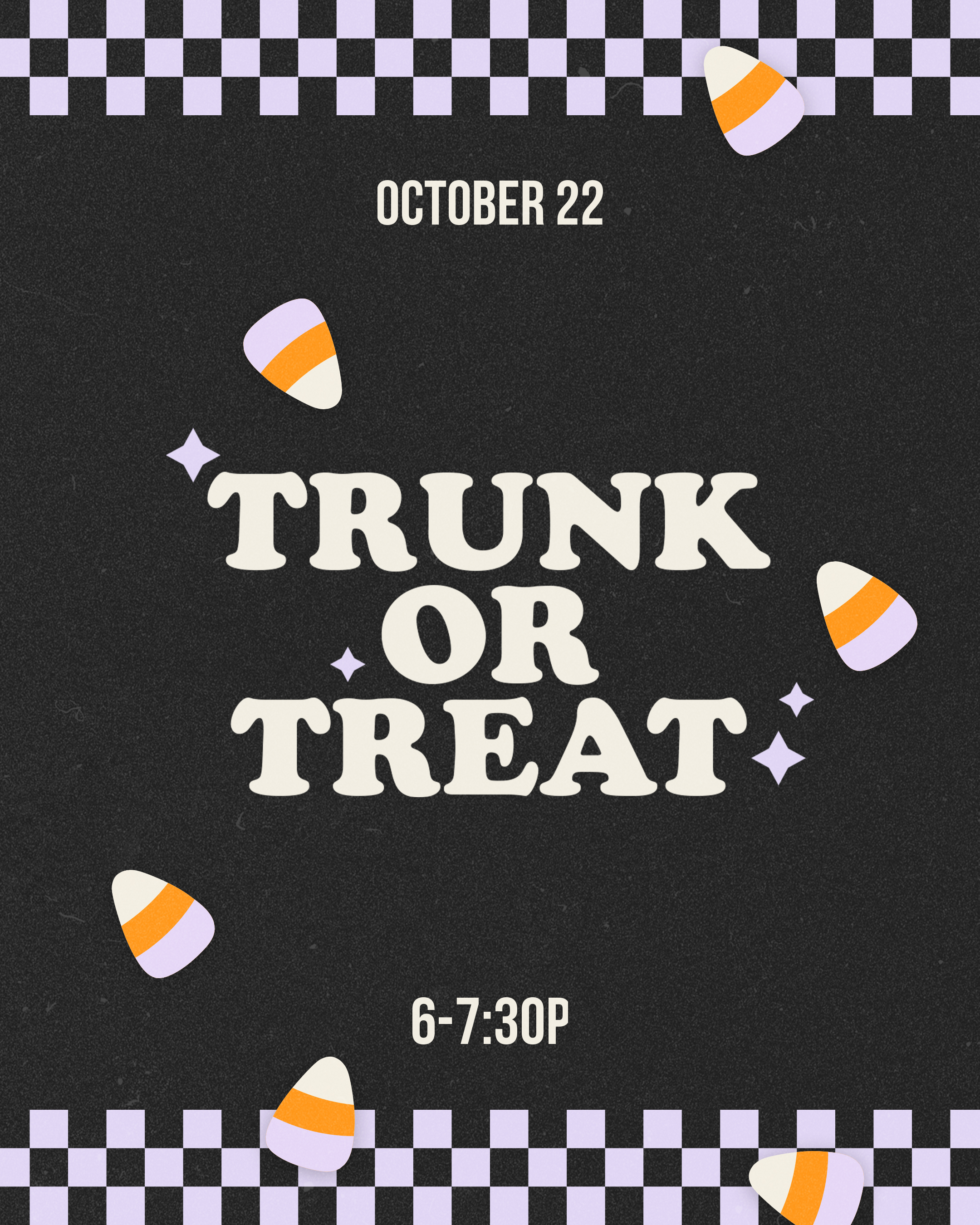 Join us on Wednesday, October 22 from 6-7:30P for on of the best events of the year! There will be a ton of candy, food, and fun for the entire family. So, come dressed in your favorite costume and we’ll see you for this free family event!